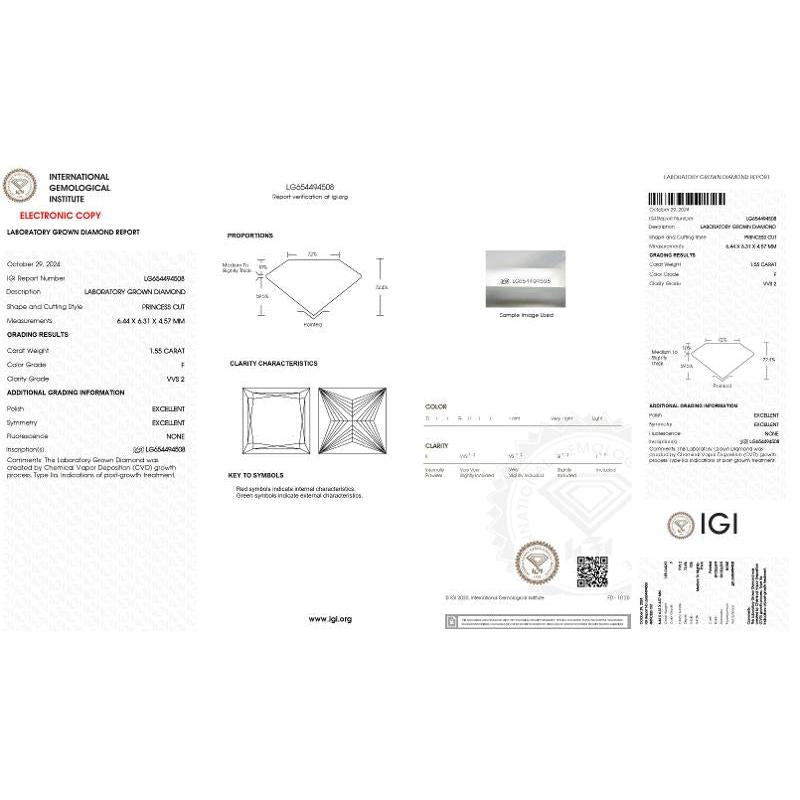 Lab Grown Diamond Princess 1.55 ct F VVS2