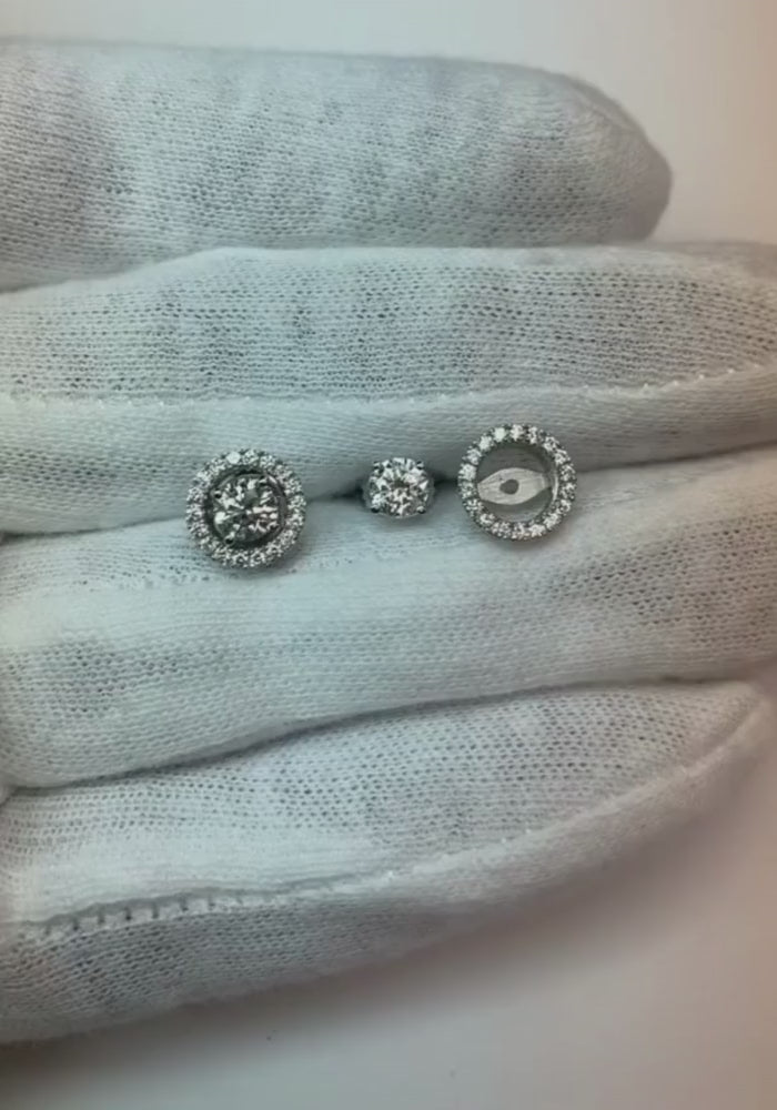 1.40 Ct Natural Earth Mined Diamond Stud Halo Jacket Earrings