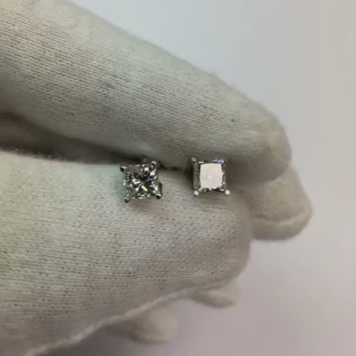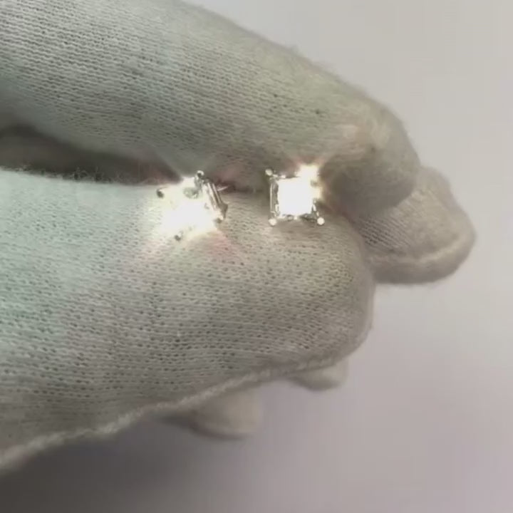 1.5 Ct Princess Cut Natural Earth Mined Diamond Stud Earring 14K White Gold