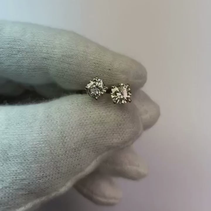 Stone Details : There is one round cut diamond approx. 0.75 carats (Approx. Diameter 5.6 mm) in each earring. Natural earth mined diamonds.