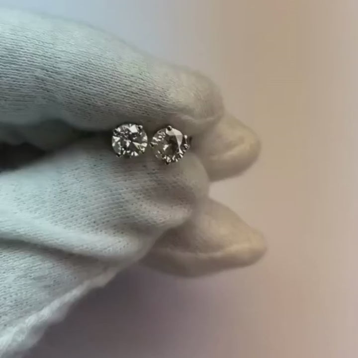 Stone Details : There is one round cut diamond approx. 0.75 carats (Approx. Diameter 5.6 mm) in each earring. Natural earth mined diamonds.