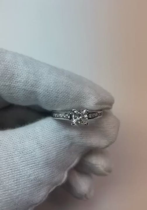 Stone Specifications : There is one princess diamond of approx. 1 carat (Approx. Size 5.4 x 5.4 mm) and approx. 0.50 carats of round diamonds on the sides. Natural earth mined diamonds.