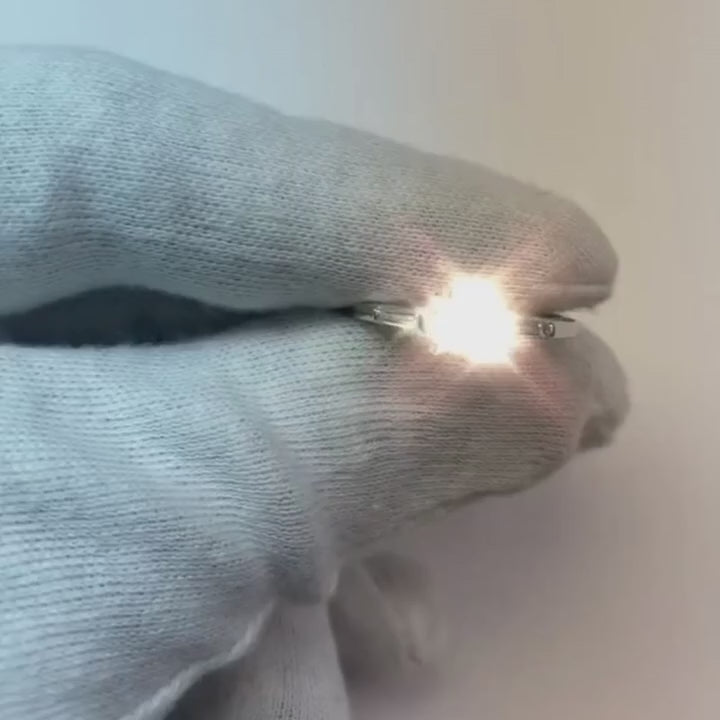 Stone Details : There is one round diamond approx. 1 carat (Approx. Diameter 6.2 mm) and two tapered baguettes approx. 0.30 carats each. Natural earth mined diamonds.