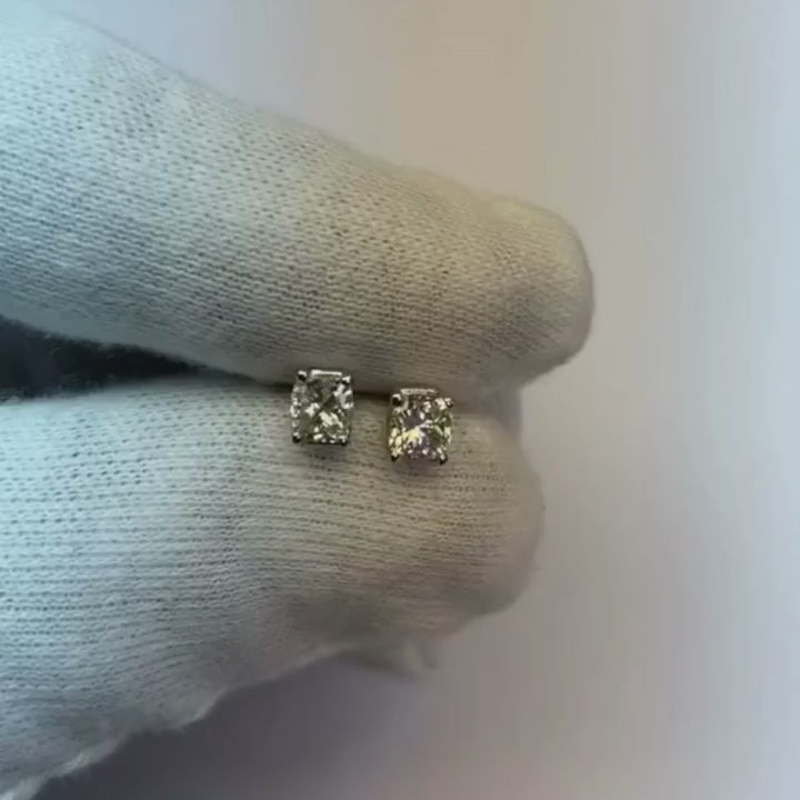 1 Carat G VS1 Cushion Cut Natural Earth Mined Diamond Studs Earring