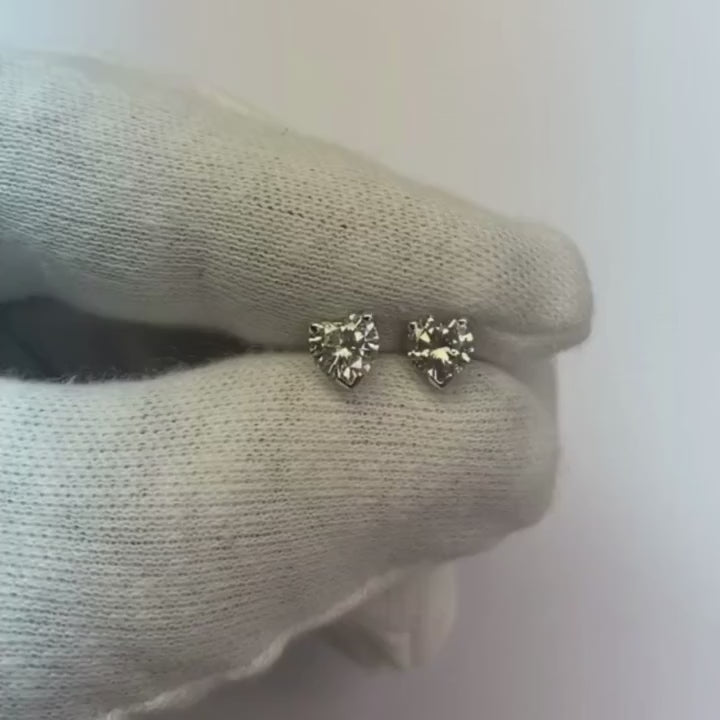 1 Carat Heart Cut Natural Earth Mined Diamond Stud Earring 14K White Gold