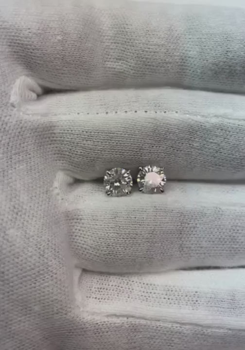 Stone Specifications : There is one diamond approx. 1.00 carats each (approx. dia. 6.4 mm) in each earring. Natural earth-mined diamonds.