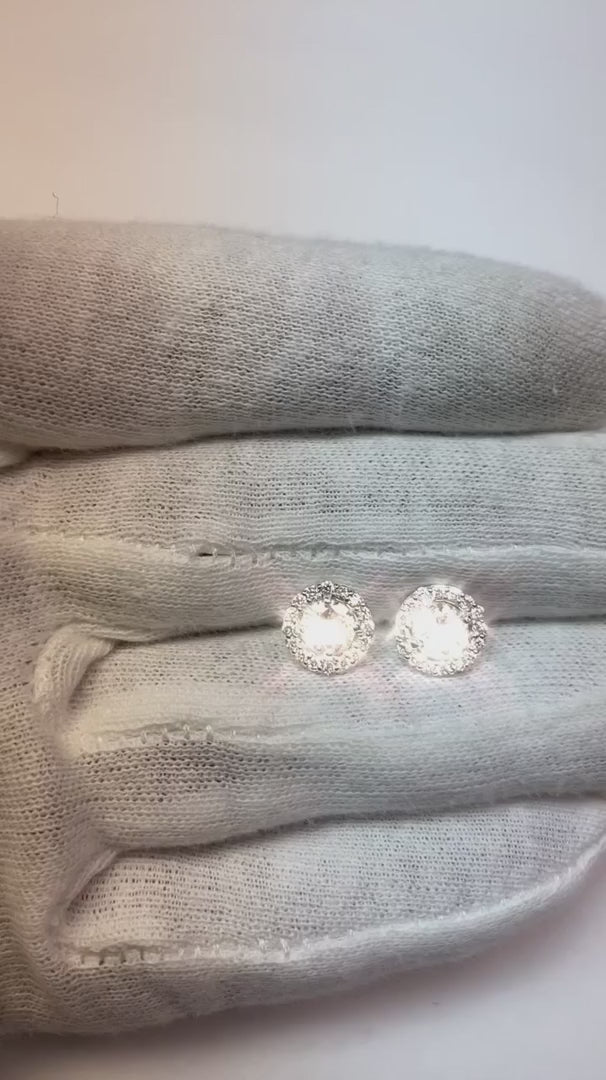 2.10 Carats D VVS1 Round Genuine Diamonds White Gold 14K Studs Pair Halo Earrings