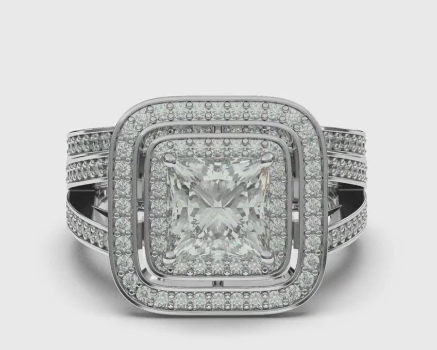 2.32 Ct Princess Center Natural Earth Mined Diamond Halo Wedding Anniversary Ring