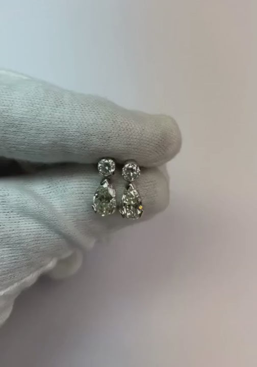 2.5 Carats Pear And Round Cut Ladies Drop Earring