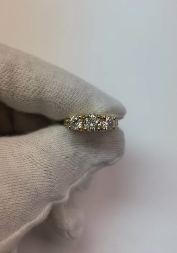Stone Specifications : There is one diamond in the center of approx. 0.75 carats, two diamonds on the sides of approx. 0.50 carats each and approx. 1.00 carats of smaller diamonds on the shank. Natural earth mined diamonds.