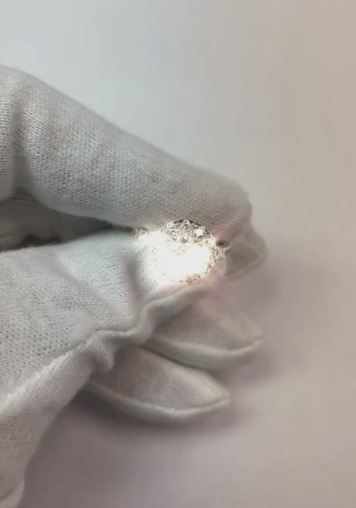 Stone Specifications : There is one diamond in the center of approx. 1 carat (approx. dia. 6.4 mm) and approx. 1 carat of smaller diamonds on the sides. Natural earth mined diamonds.