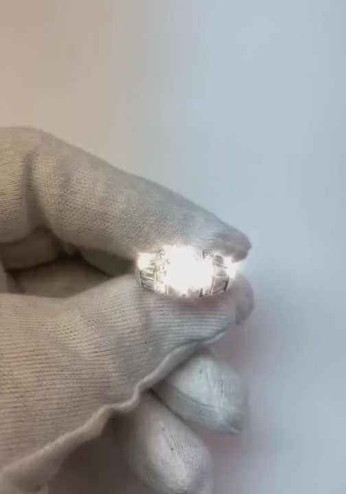 3.26 Carats Natural Earth Mined Diamond Round & Baguette Engagement Ring White Gold 14K