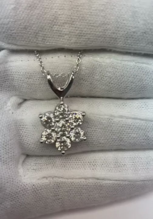 3.5 Ct Natural Earth Mined Diamond Flower Style Necklace Pendant White Gold Women Jewelry