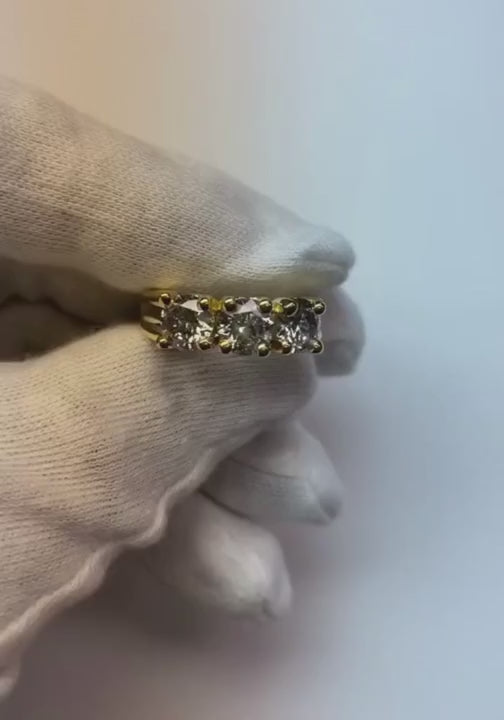 This gorgeous 3 CT, YELLOW GOLD RING is sure to make her feel special. There are three diamonds. These diamonds have an incredible brilliance. The beauty of this ring is that it shows complete diamonds from sides.