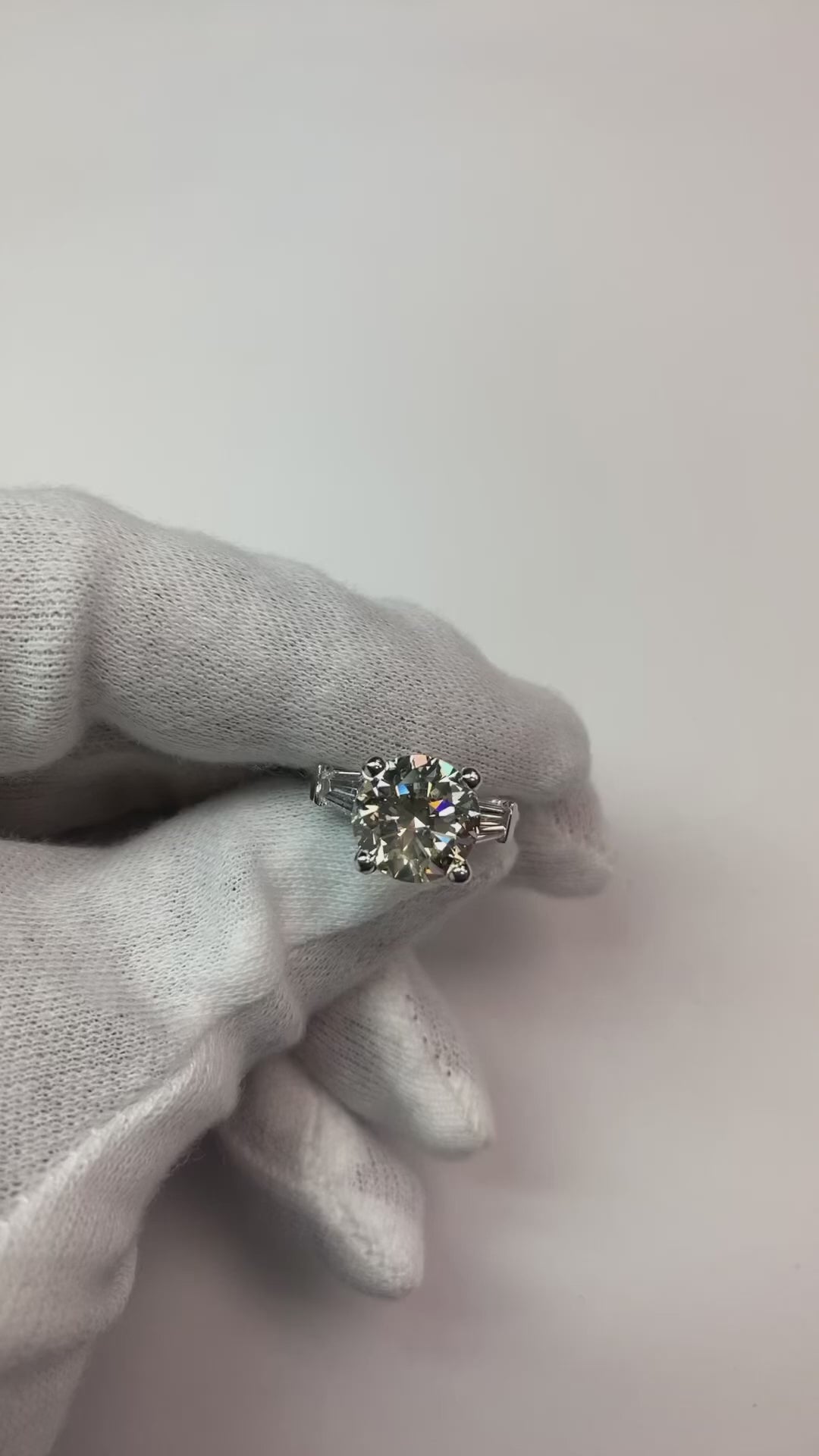 Stone Details : There is one round cut old miner diamond approx. 4 carats (Approx. Dia. 10 mm) and two baguette diamonds approx. 0.25 carats each (Approx. Size 4.7 x 2.2 mm) on the sides. Natural earth mined diamonds.