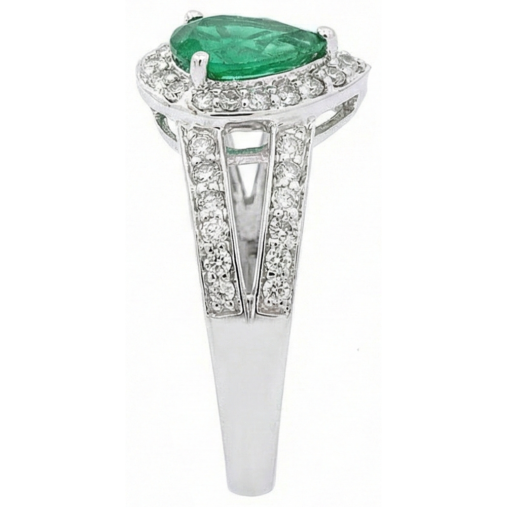 6 Carats Pear Green Emerald With Natural Earth Mined Diamond Wedding Ring White Gold 14K