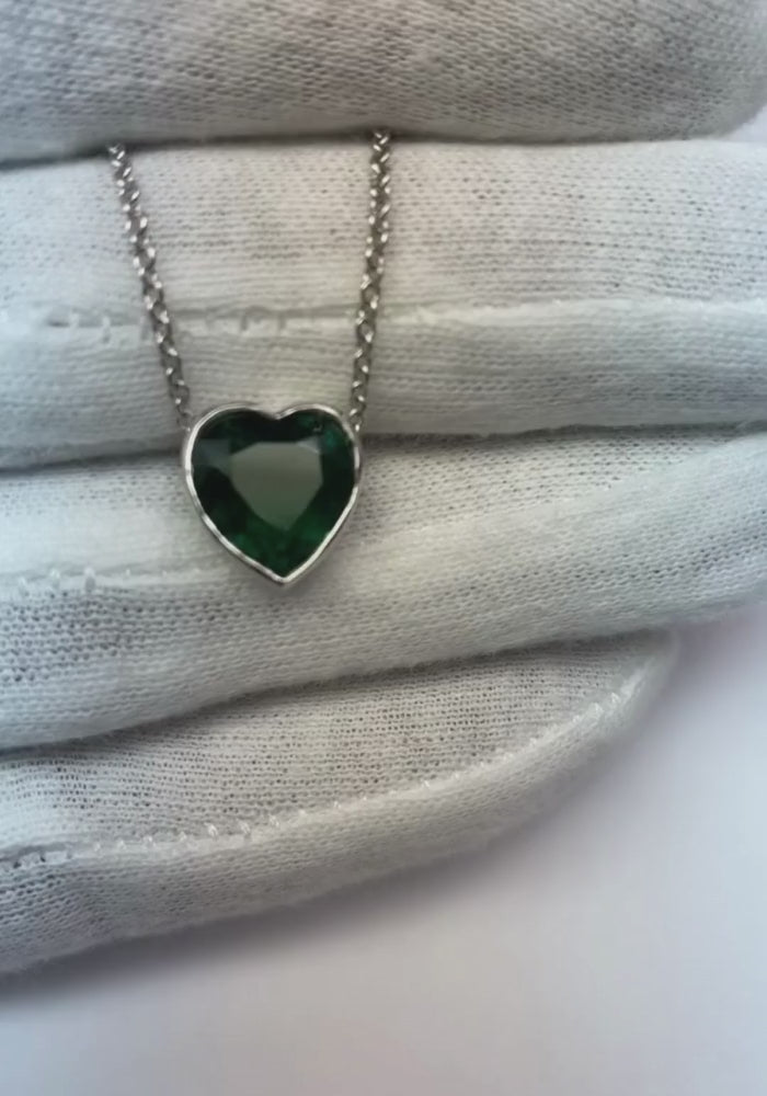 7 Ct Big Heart Shape Green Emerald Pendant Necklace