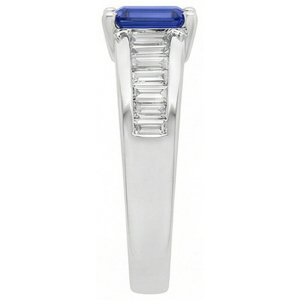 Baguette Natural Earth Mined Diamond ( Not Lab Grown ) Wedding Ring 2 Carats Emerald Blue Sapphire Gemstone