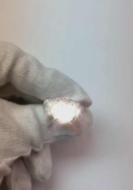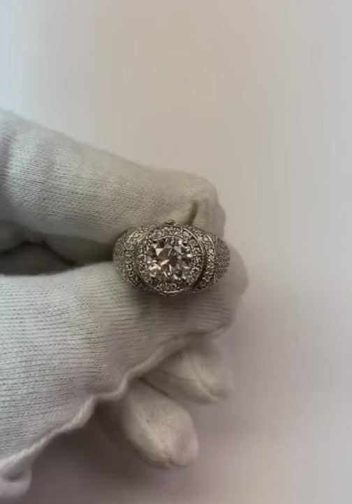 Big Round Natural Earth Mined Diamond Men's Ring With Accents 5.50 Carats White Gold 14K