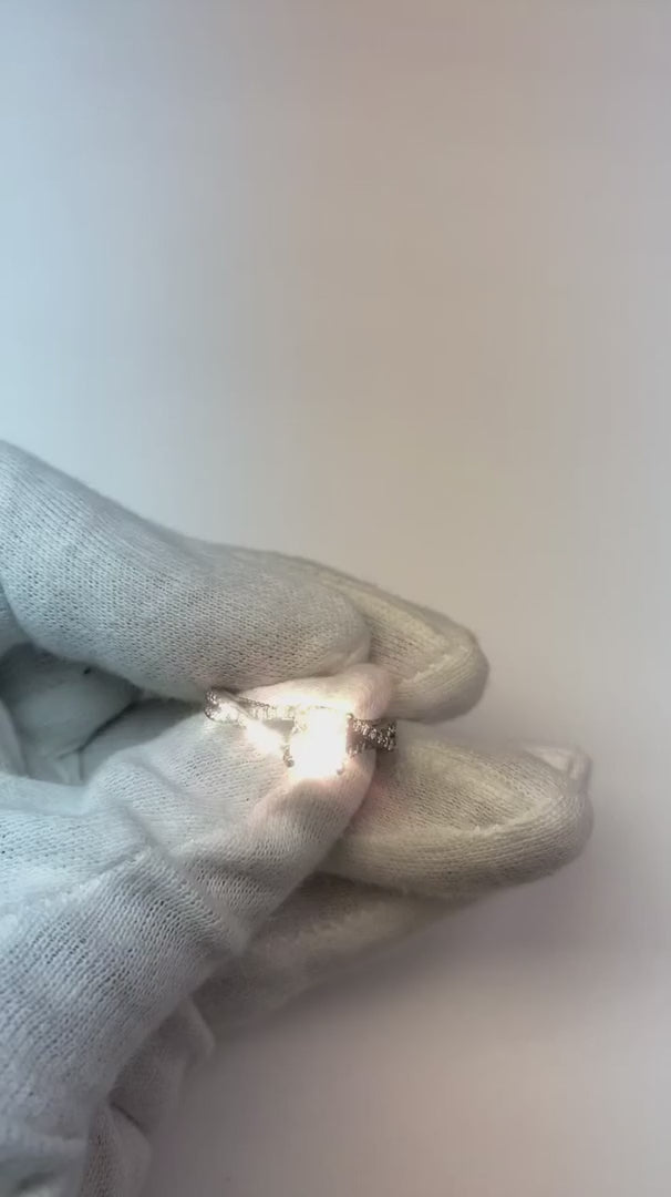 Stone Specifications: There is one cushion cut diamond in the center of approx. 1 carat (Approx. Size. 5.2 x 5.2 mm) with approx. 0.75 carats of smaller diamonds on the shank. Natural earth mined diamonds.