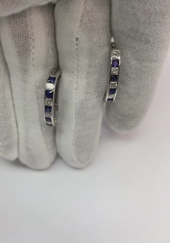 Stone Specifications : There are approx. 1 carat of diamonds and approx. 1.20 carats of sapphires in each earring. Natural earth-mined stones.