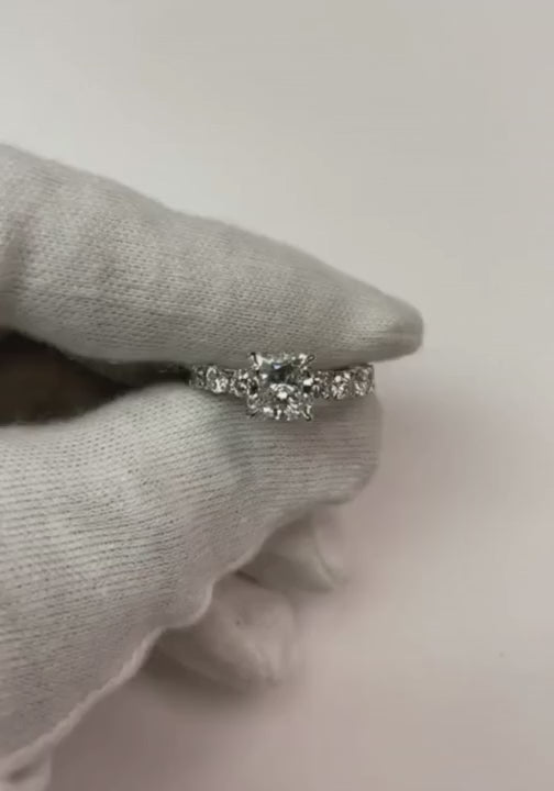 Stone Details : There is one cushion diamond in the center approx. 2 carats (Approx. Size 7.2 x 7.2 mm) with approx. 2 carats of round diamonds on the sides. Natural earth mined diamonds.