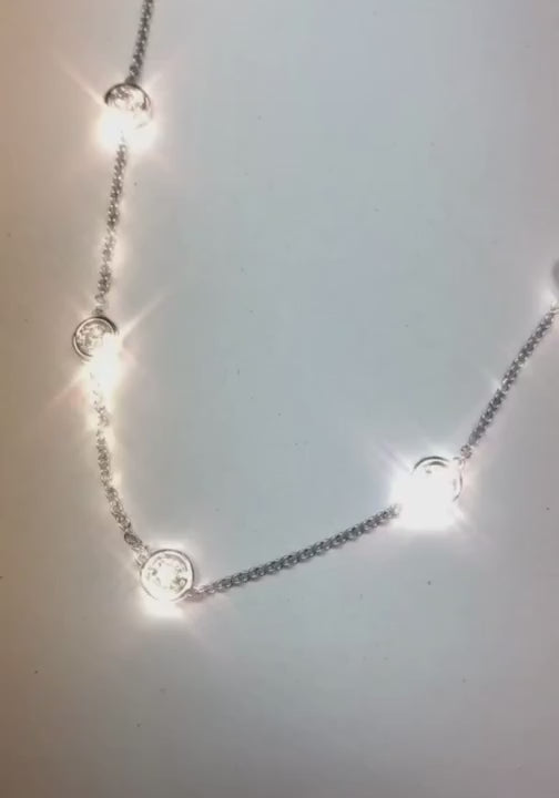 Natural Earth Mined Diamond Half Way Around Chain Necklace 3.15 Carats 14K White Gold