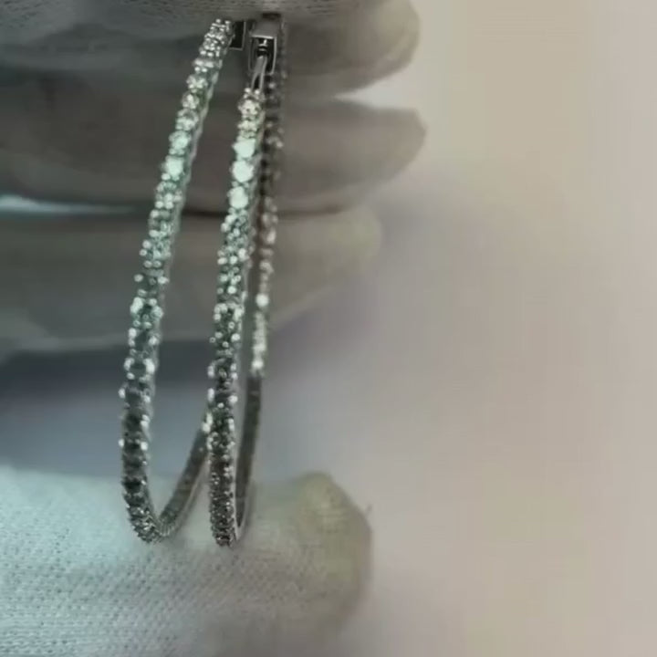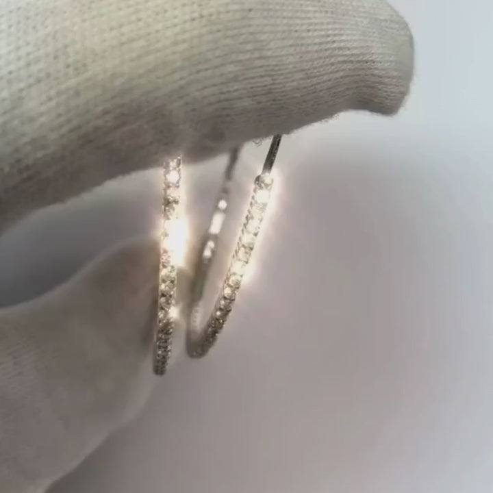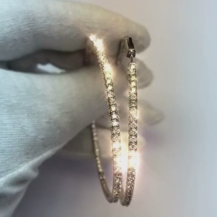4 Carats Large Inside Out Diamond Hoop Earrings 14K 2 In Shared Prongs