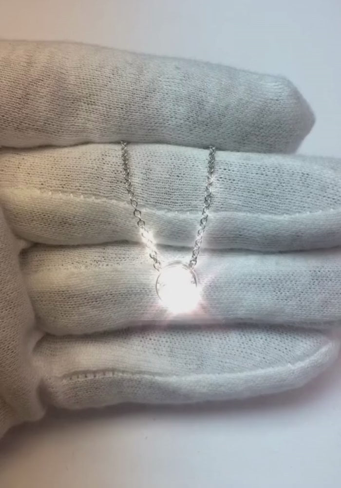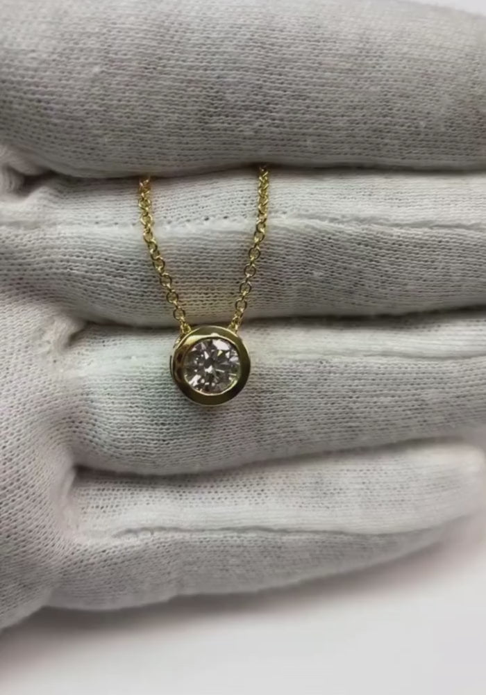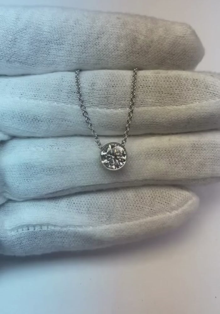 Natural Earth Mined Diamond Necklace Pendant 1.50 Carat Round Cut Bezel Set 14K White Gold