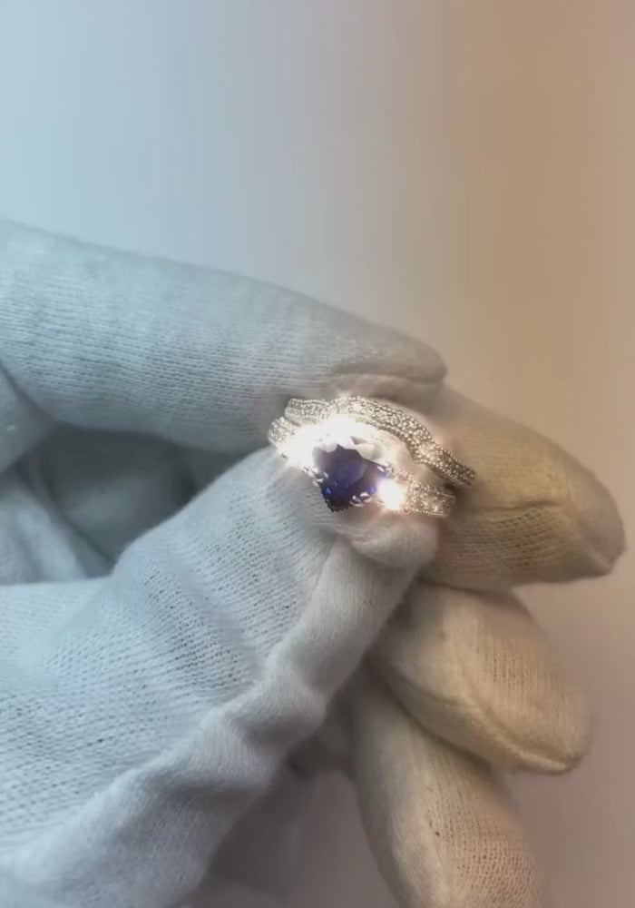 Stone Details : There is one heart cut sapphire approx. 1.50 carats (Approx. Size 6.5 x 6.5 mm) and approx. 2 carats of diamonds in the set. Natural earth mined stones.