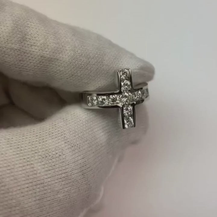 Natural Earth Mined Diamonds Cross Shape Engagement Fancy Ring 1.4 Ct. White Gold 14K