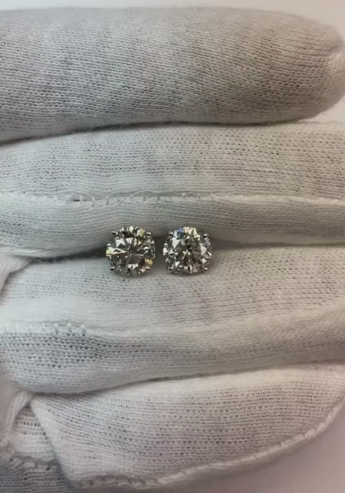Natural Earth Mined Diamonds Stud Earrings 4 Carats White Gold New