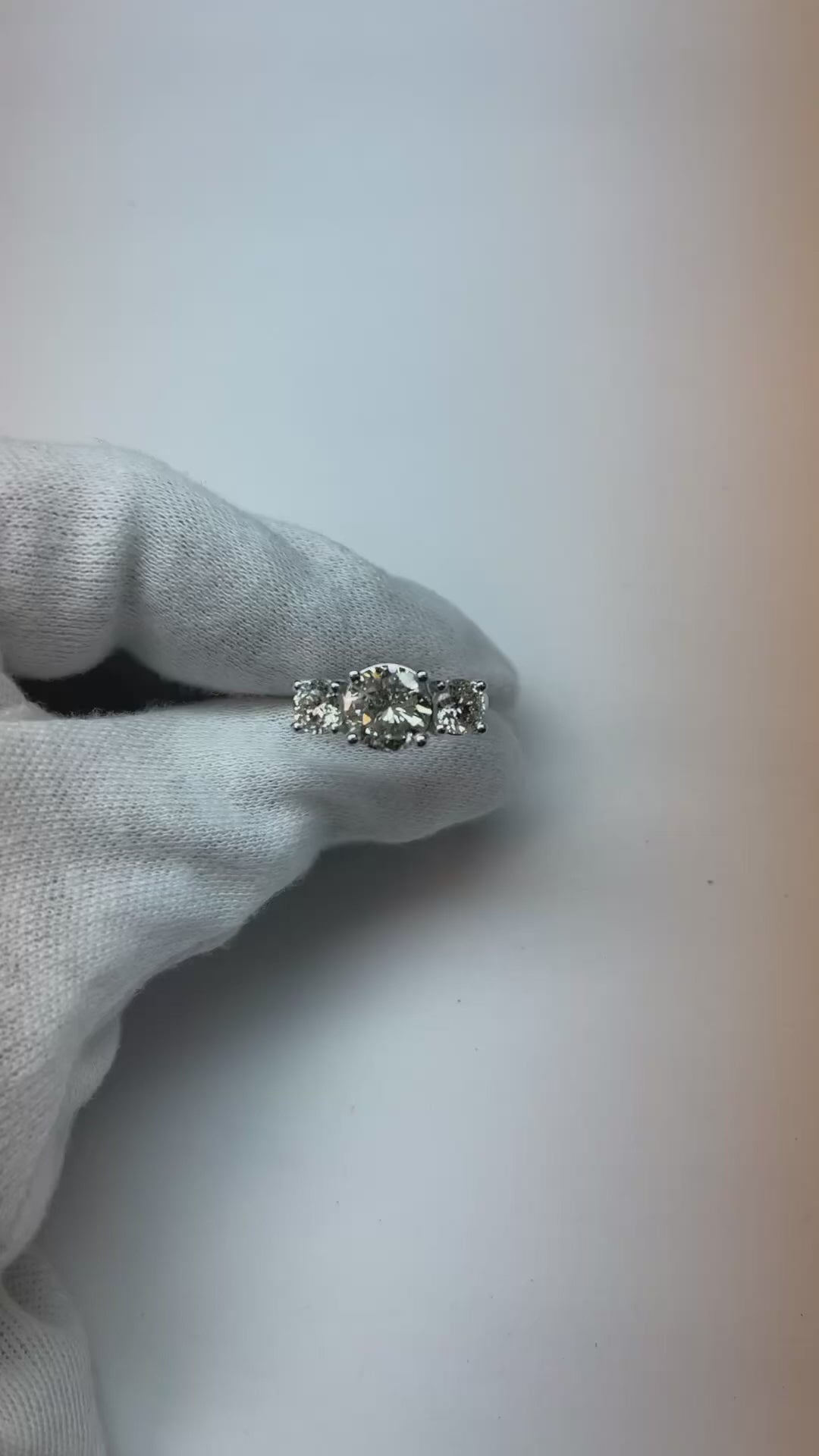 Stone Details : This three stone ring comes with one round diamond in the middle approx. 2 carats (Apprx. Dia. 8 mm) with two other round diamonds on the sides approx. 0.75 carats each (Approx. Dia. 5.5 mm). Designed with natural earth mined diamonds.