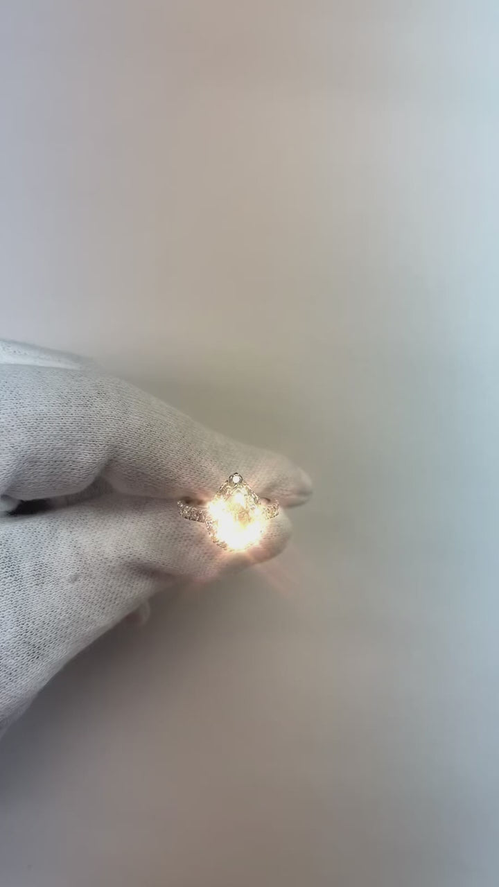 Stone Details : There is one center pear cut diamond approx. 1.50 carats (Approx. Size 8.8 x 5.8 mm) and smaller round diamonds on the sides approx. 1.25 carats. Natural earth mined diamonds.