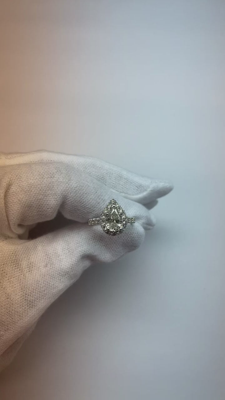Halo Pear Real Diamond Anniversary Ring 2.75 Carats White Gold 14K