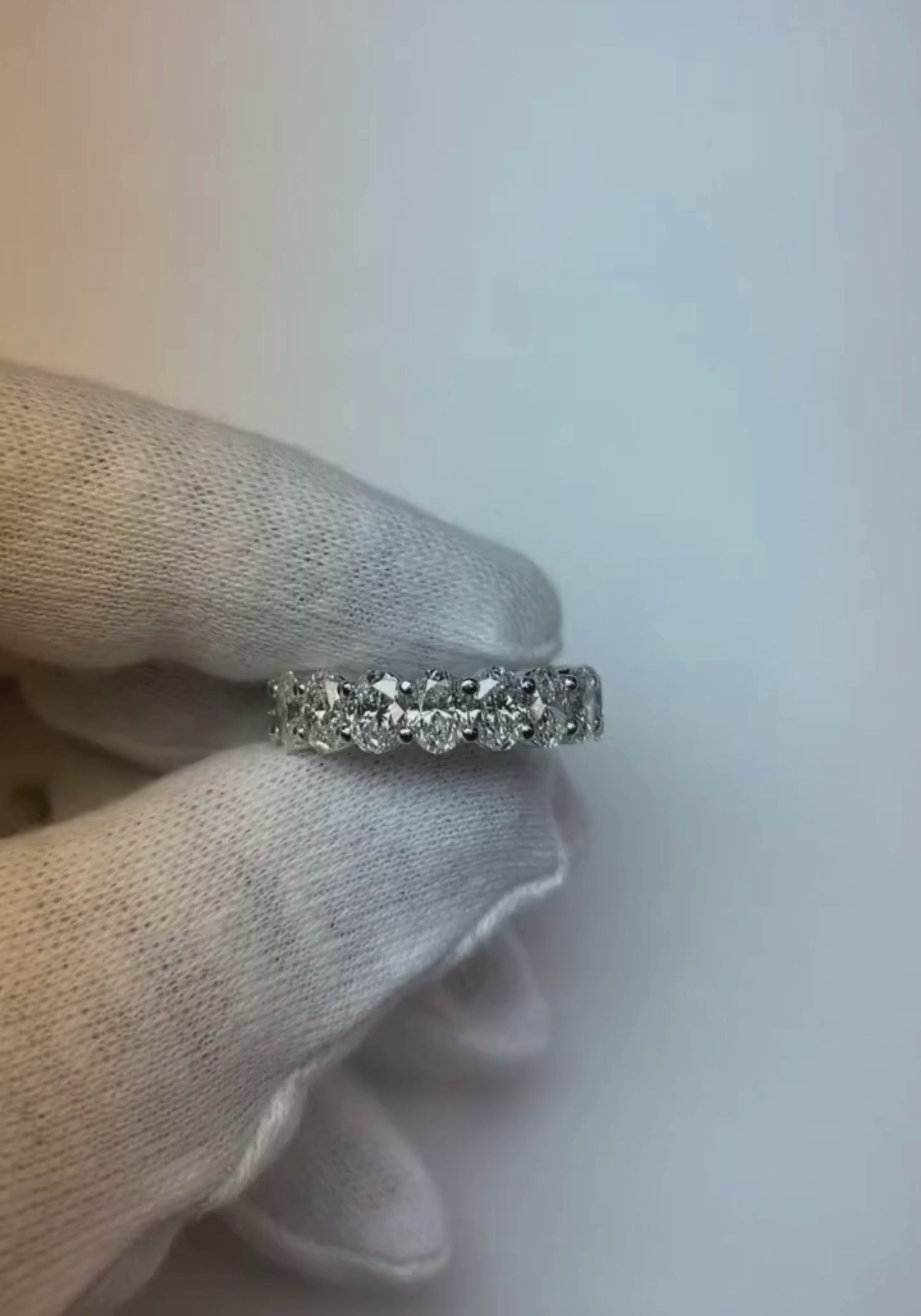 Oval Cut 6 Carats Diamond Eternity Wedding Band Solid White Gold