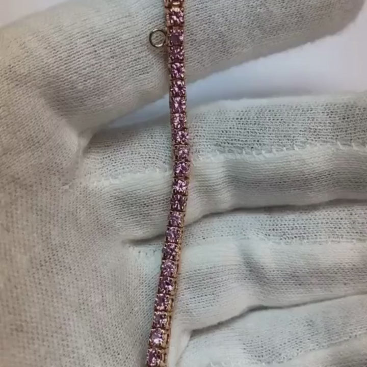 Pink Sapphire Tennis Bracelet Rose Gold 14K 5.90 Carats Jewelry