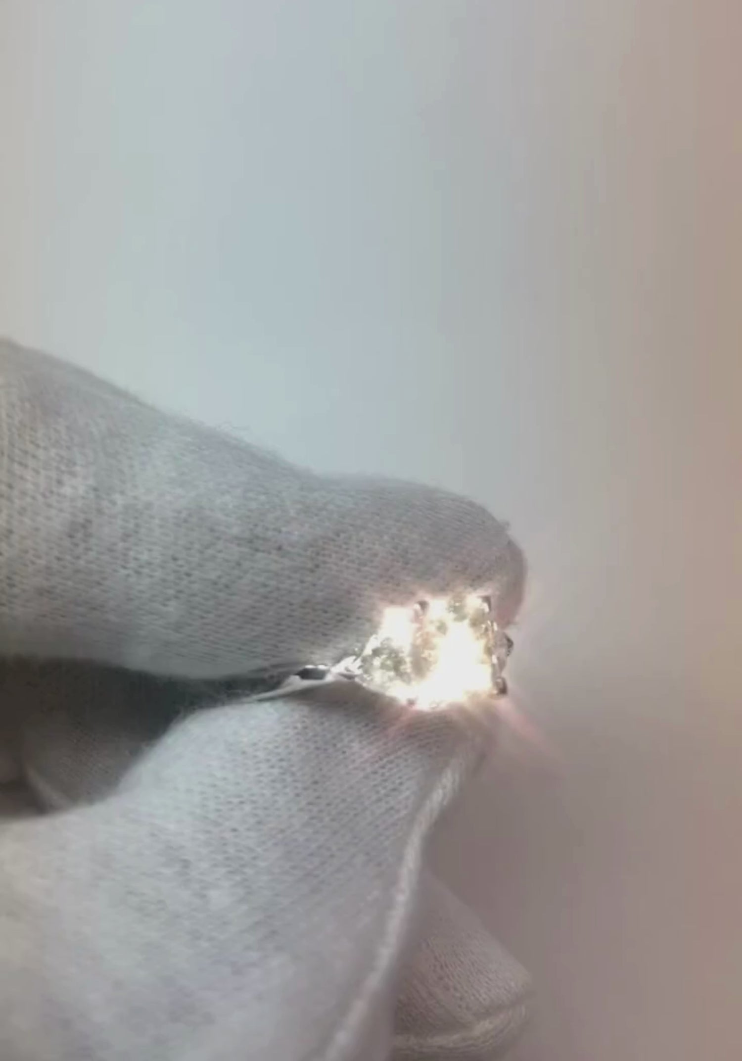 Stone Details : There is one diamond princess cut of approx. 1.01 carats and two trilliants of approx. 0.30 carats each. Natural earth mined diamonds.