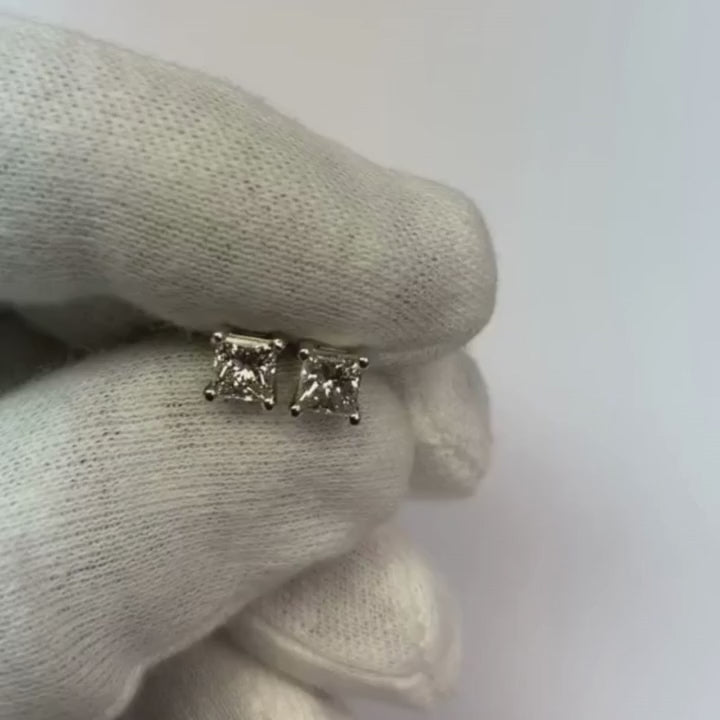 Princess Cut Stud Natural Earth Mined Diamond Earring White Gold 14K 1.20 Ct Prong Set