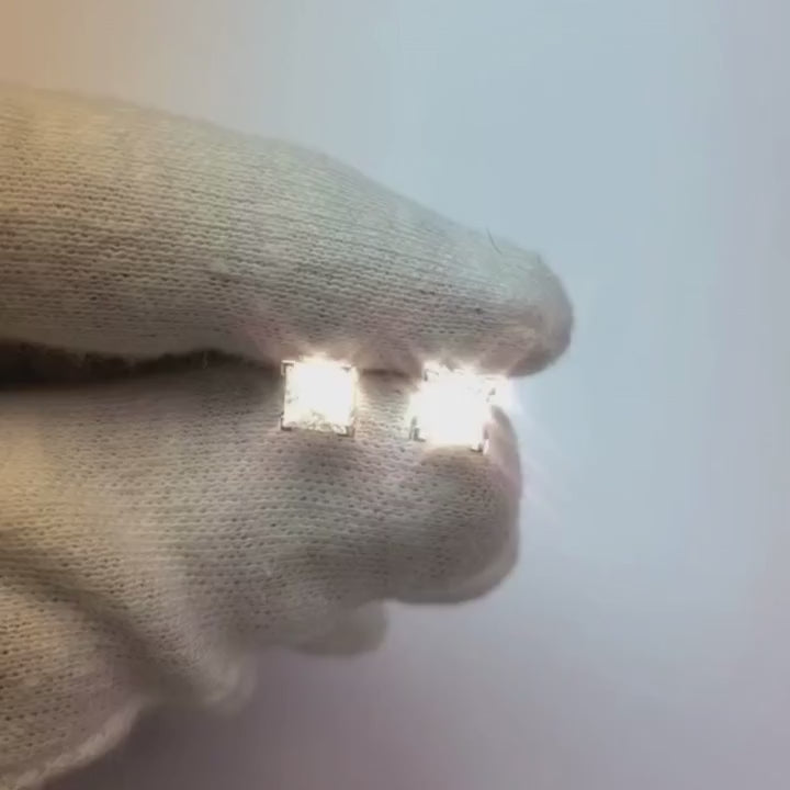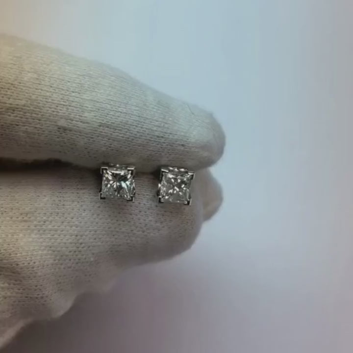 Stone Details : There is one princess cut diamond approx. 0.75 carats (Approx. Size 4.8 x 4.8 mm) in each earring. Natural earth mined diamonds.
