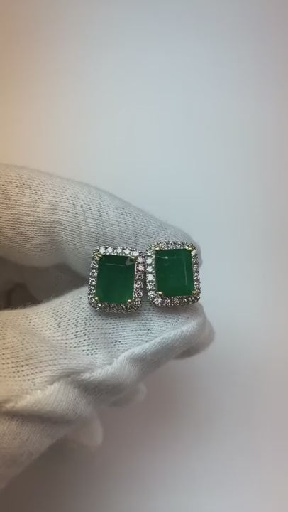 Prong Set Radiant Green Emerald Halo Natural Earth Mined Diamonds Pave 4.70 Ct. Studs