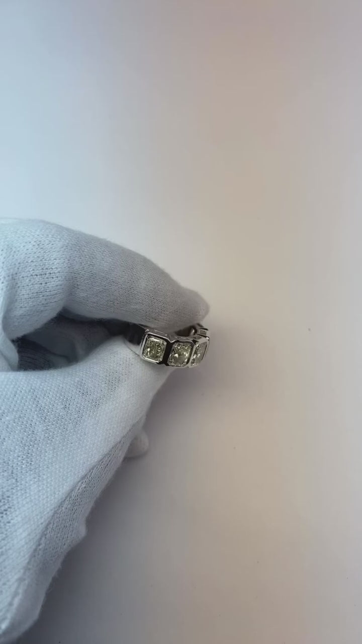 Stone Details : There are five radiant cut diamonds approx. 1.50 carats each (Approx. Size 7.5 x 5.7 mm) in the band. Lab Grown Diamond.