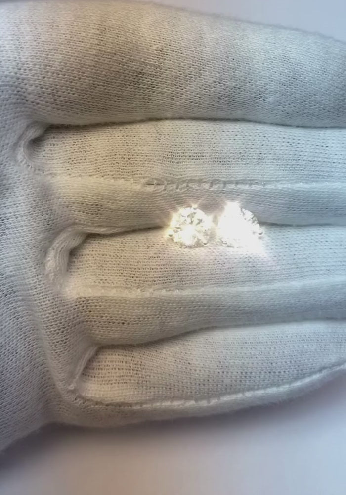 Stone Specifications: There are two diamonds approx. 1.75 carats each (approx. dia 7.6 mm). Natural earth-mined diamonds.