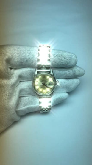 Rolex Lady Datejust Silver Watch Ss Jubilee Bracelet Fluted Bezel
