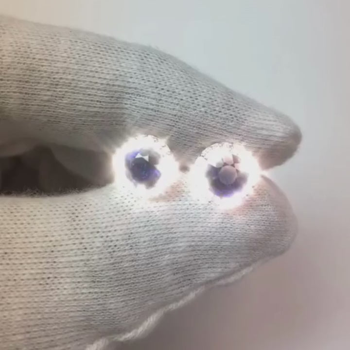 Round Ceylon Sapphire Stud Earring Halo Natural Earth Mined Diamond Gold 2.30 Ct