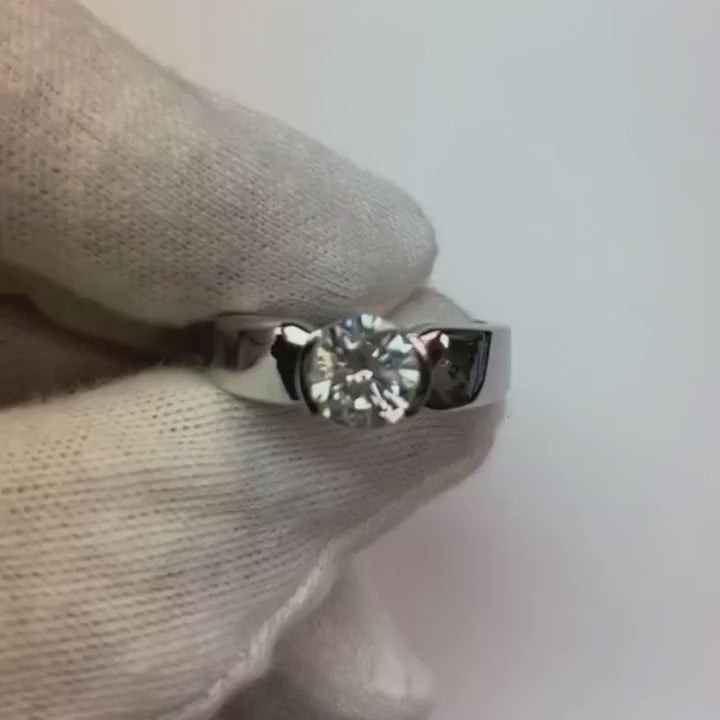 Solitaire Natural Earth Mined Diamond Ring Half Bezel Setting 1.50 Carats Men's White Gold