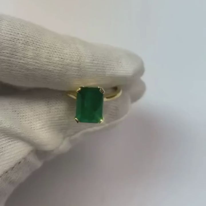 Solitaire Green Emerald Ring 3 Carats Yellow Gold 14K Gemstone Jewelry
