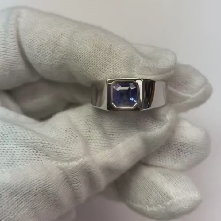 Solitaire Men's Ring 1.50 Carats Flush Set Blue Sapphire Asscher Cut