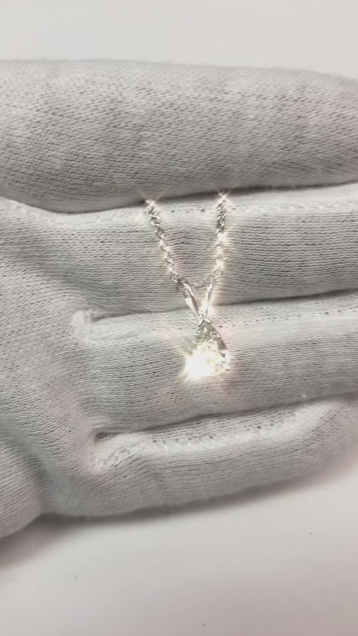 Solitaire Pear Real Diamond Lady Necklace Pendant 1.0 Carat White Gold 14K
