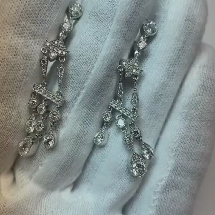 Sparkling Chandelier Natural Earth Mined Diamond Earrings 3 Carat Earring